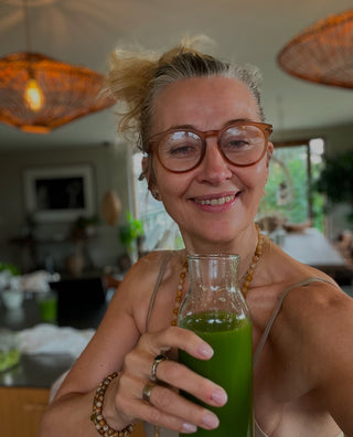 Ich beginne meinen Tag meist mit Bewegung, oft mit etwas Yoga oder sanften Dehnübungen. Zu meiner festen Morgenroutine gehören lauwarmes Zitronenwasser, frischer Selleriesaft und in der Regel ein leberreinigender Smoothie oder ein grüner Smoothie.