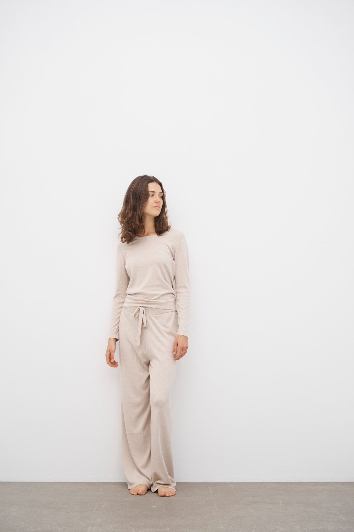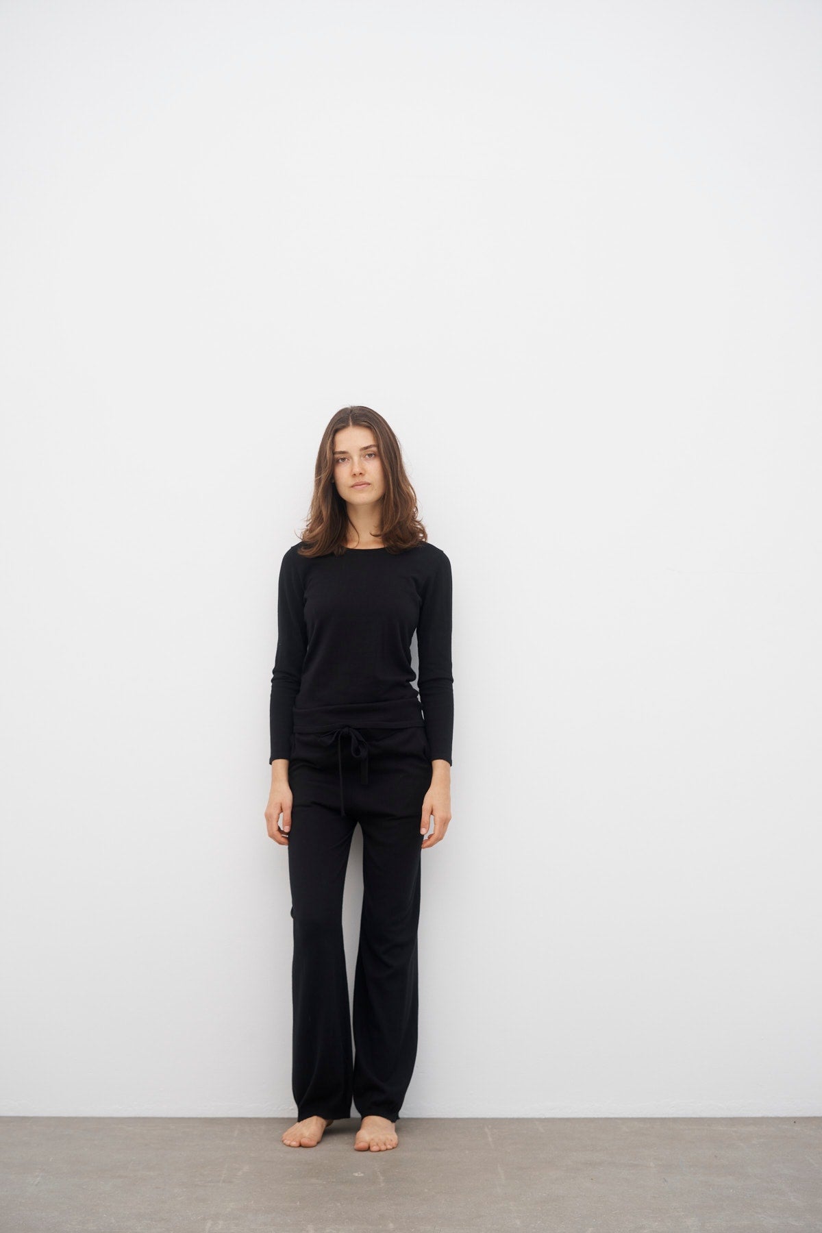 Mit ihrem schlichten, zeitlosen Schnitt und den klassischen langen Ärmeln schafft die Bluse eine elegante, ausbalancierte Silhouette – ideal für sanfte Bewegungen, Meditation oder einfach, um sich den ganzen Tag über wohl und stilvoll zu fühlen.