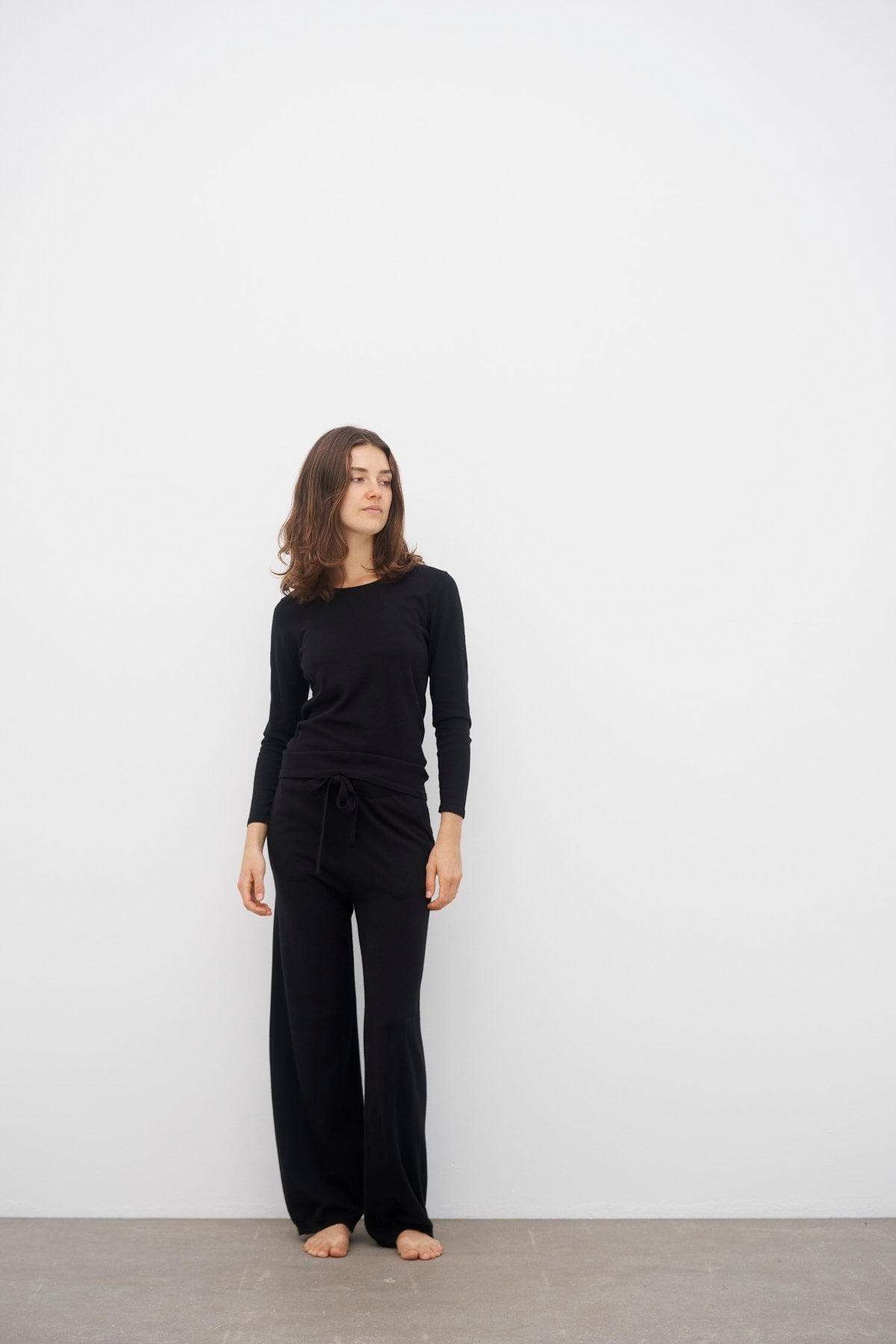 Die weite Passform der Beine sorgt für Bewegungsfreiheit und ein fließendes Tragegefühl – perfekt für sanfte Aktivitäten wie Yoga und Pilates oder einfach, um sich den ganzen Tag über wohlzufühlen.Ein zeitloses und vielseitiges Kleidungsstück, das mühelos zwischen ruhigen Morgenstunden, achtsamer Bewegung und entspanntem Alltagsstil wechselt.