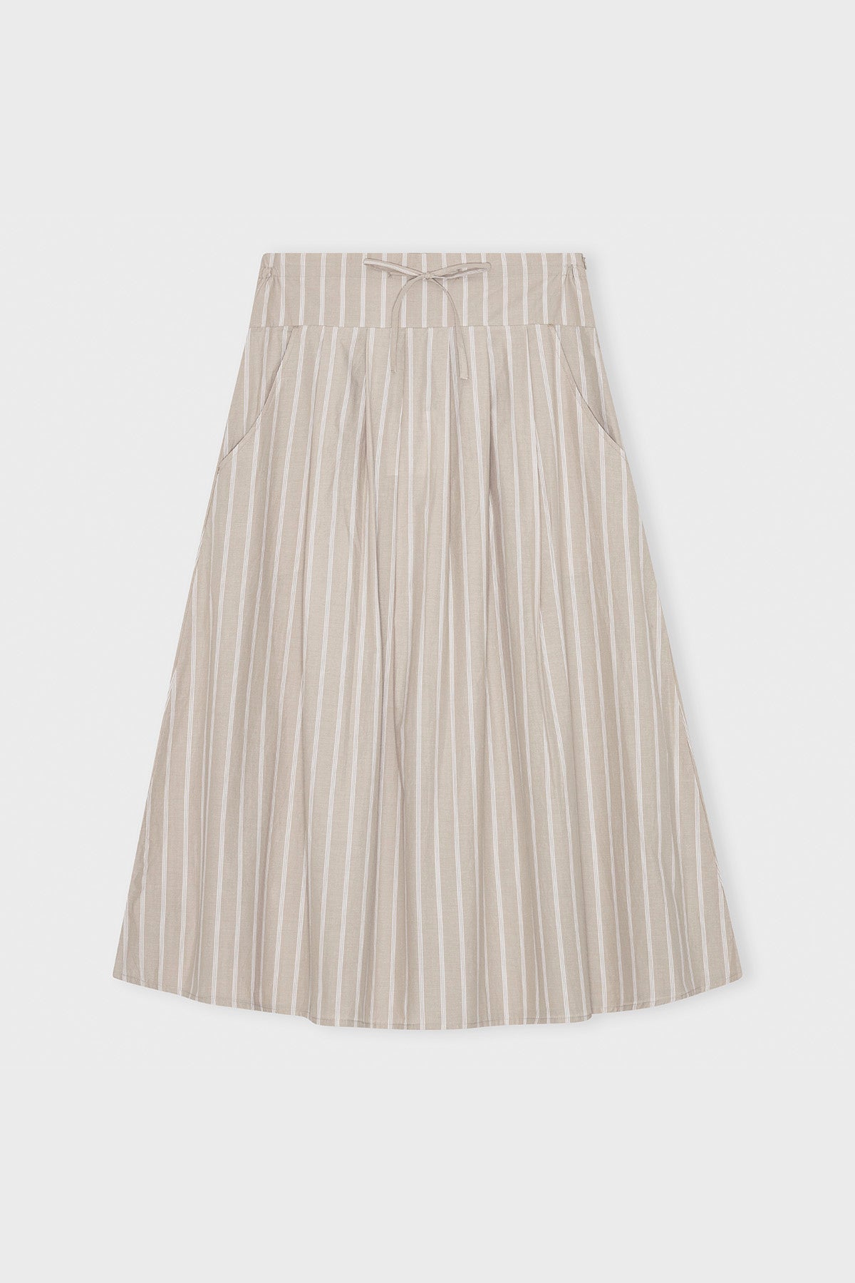 Der Rock hat einen Reißverschluss an der Seite, ein Bindeband in der Taille und praktische Taschen.