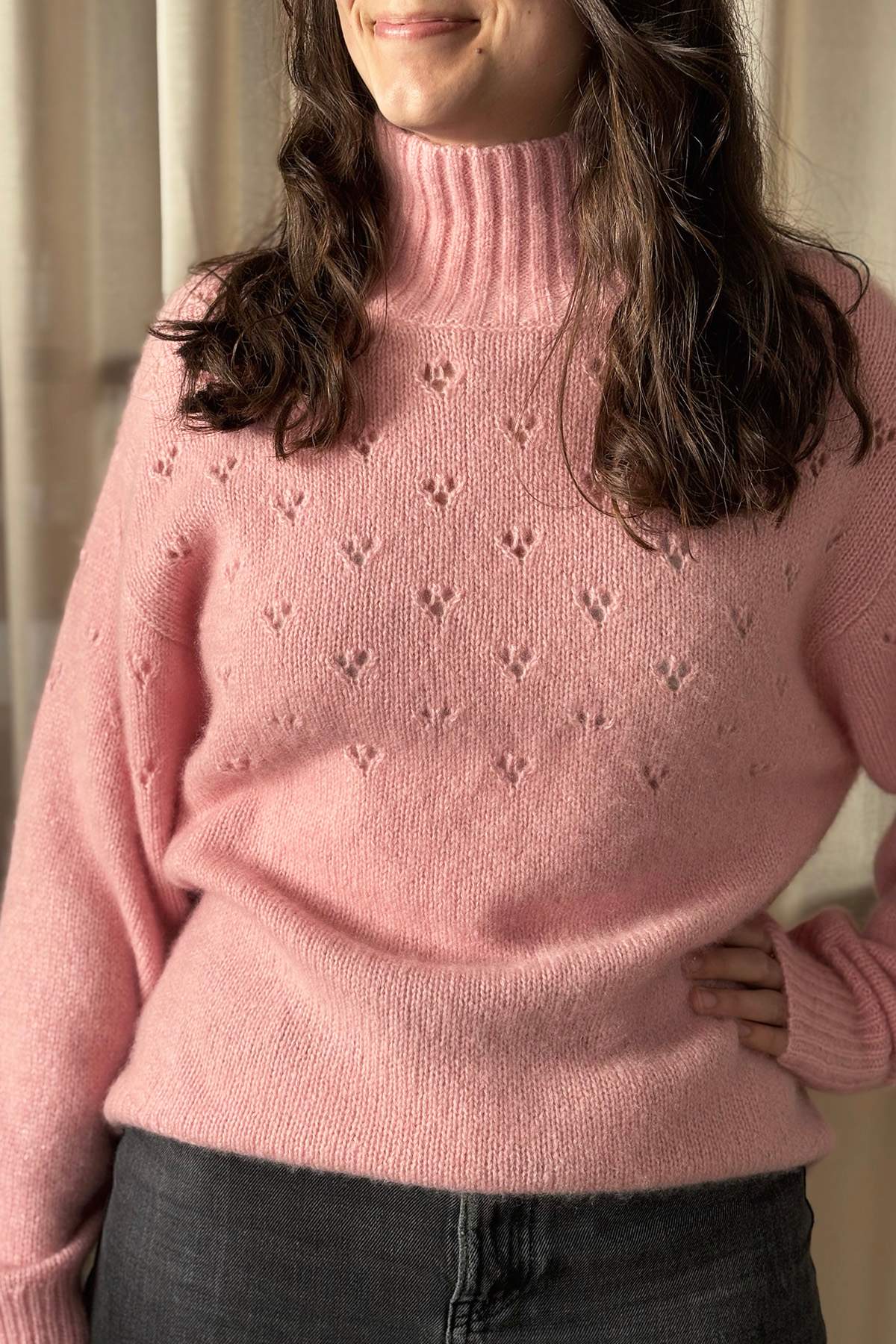 Sichere dir ein einzigartiges, handgefertigtes Limited-Edition-Teil aus feiner rosa Kaschmir/Seide. Es gibt nur wenige Stücke – alle in Größe M – solange der Vorrat reicht.