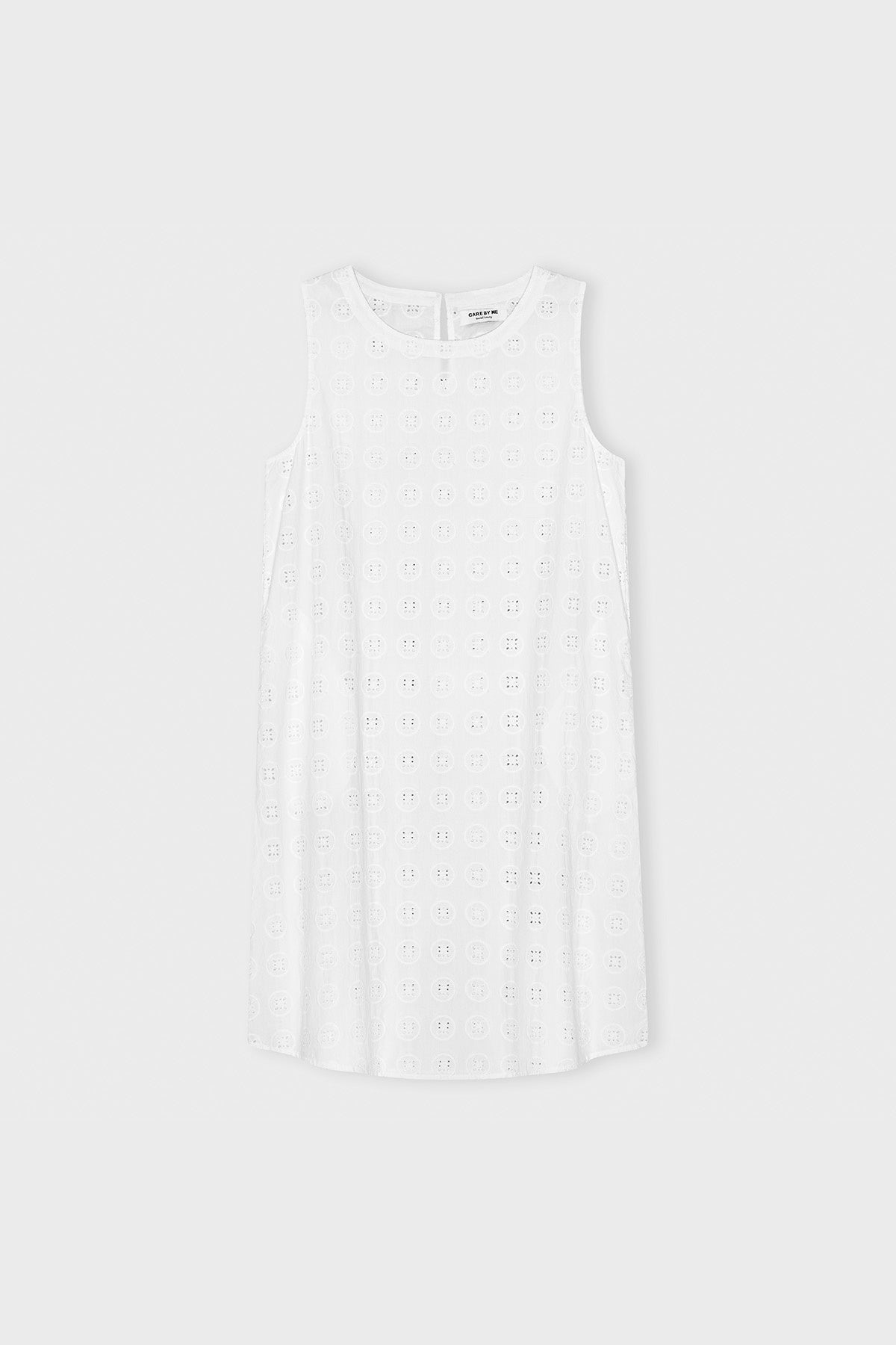 Feines A-Linien-Kleid mit schönem Broderie-Anglaise-Muster aus der Augusta-Serie. Das Kleid hat einen klassischen Schnitt, reicht bis knapp unter das Knie und wird im Rücken mit einem kleinen Knopf geschlossen. Gefertigt aus Bio-Baumwolle.Augusta – nordisch inspirierte Broderie Anglaise