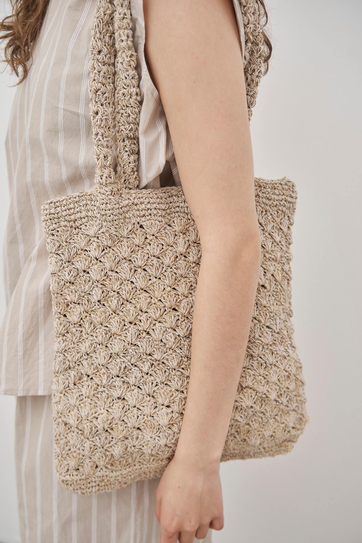 Sie wird von Hand aus Hanf und Baumwolle gehäkelt und eignet sich perfekt für alles – vom Strandausflug über den Bummel auf dem Sommermarkt bis hin zum täglichen Gebrauch das ganze Jahr über.