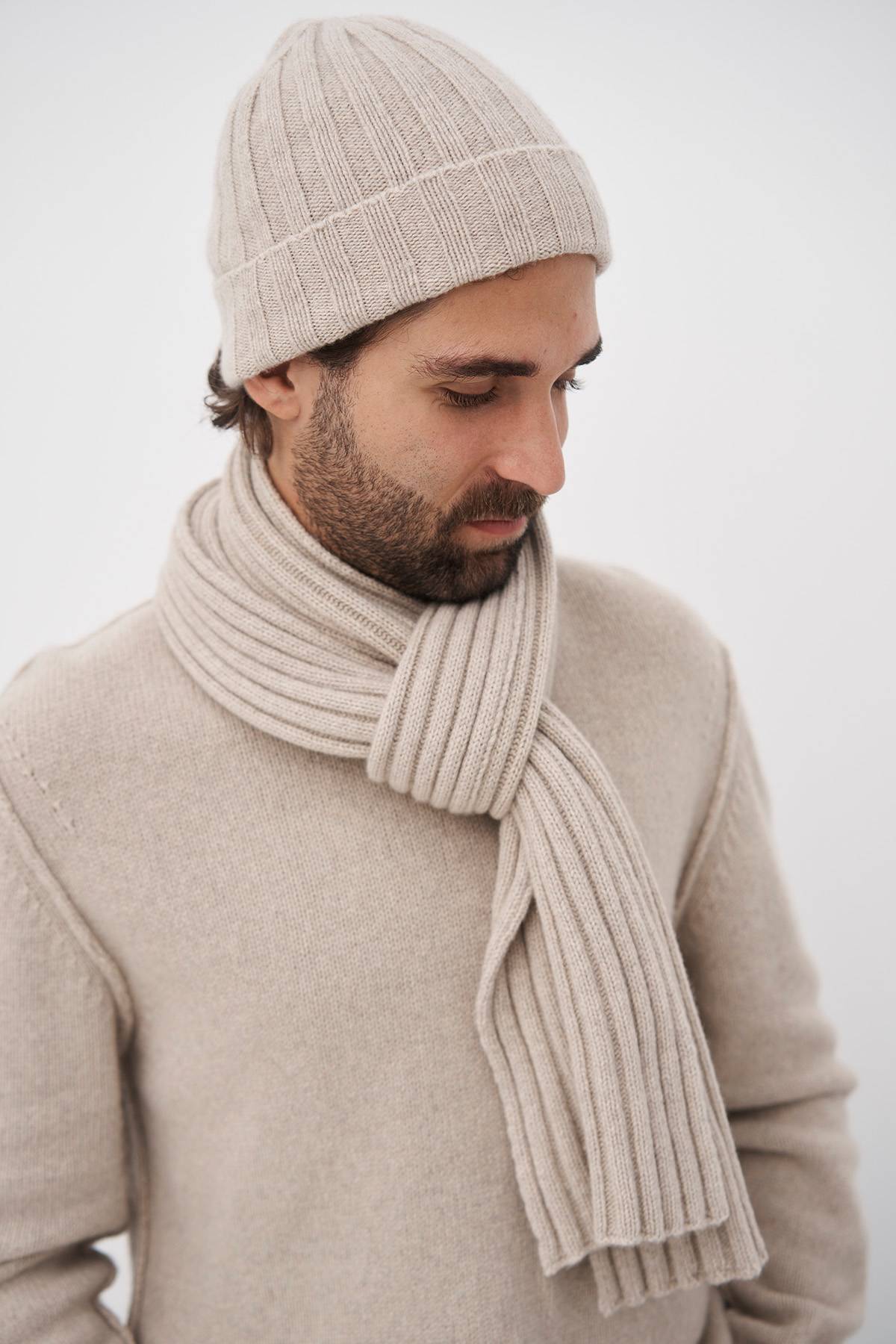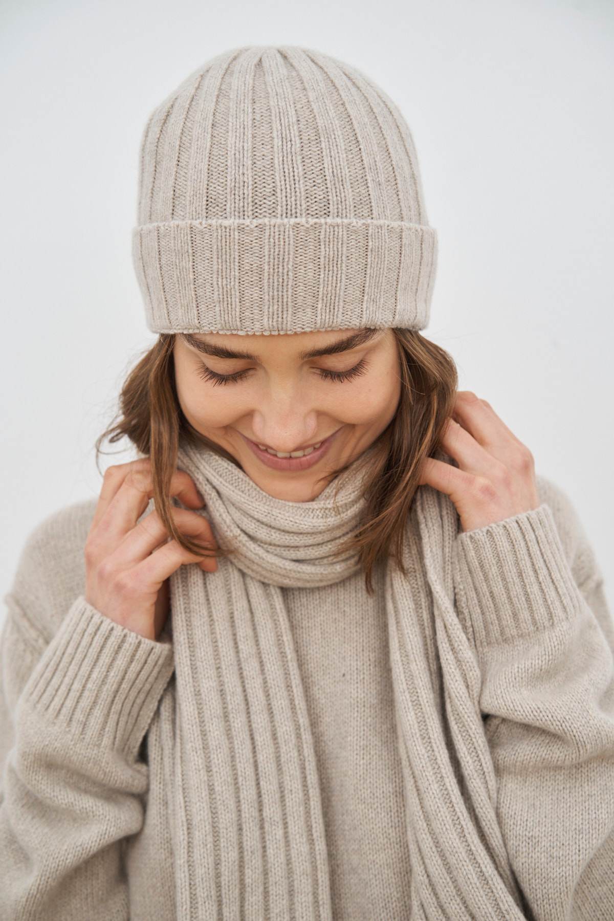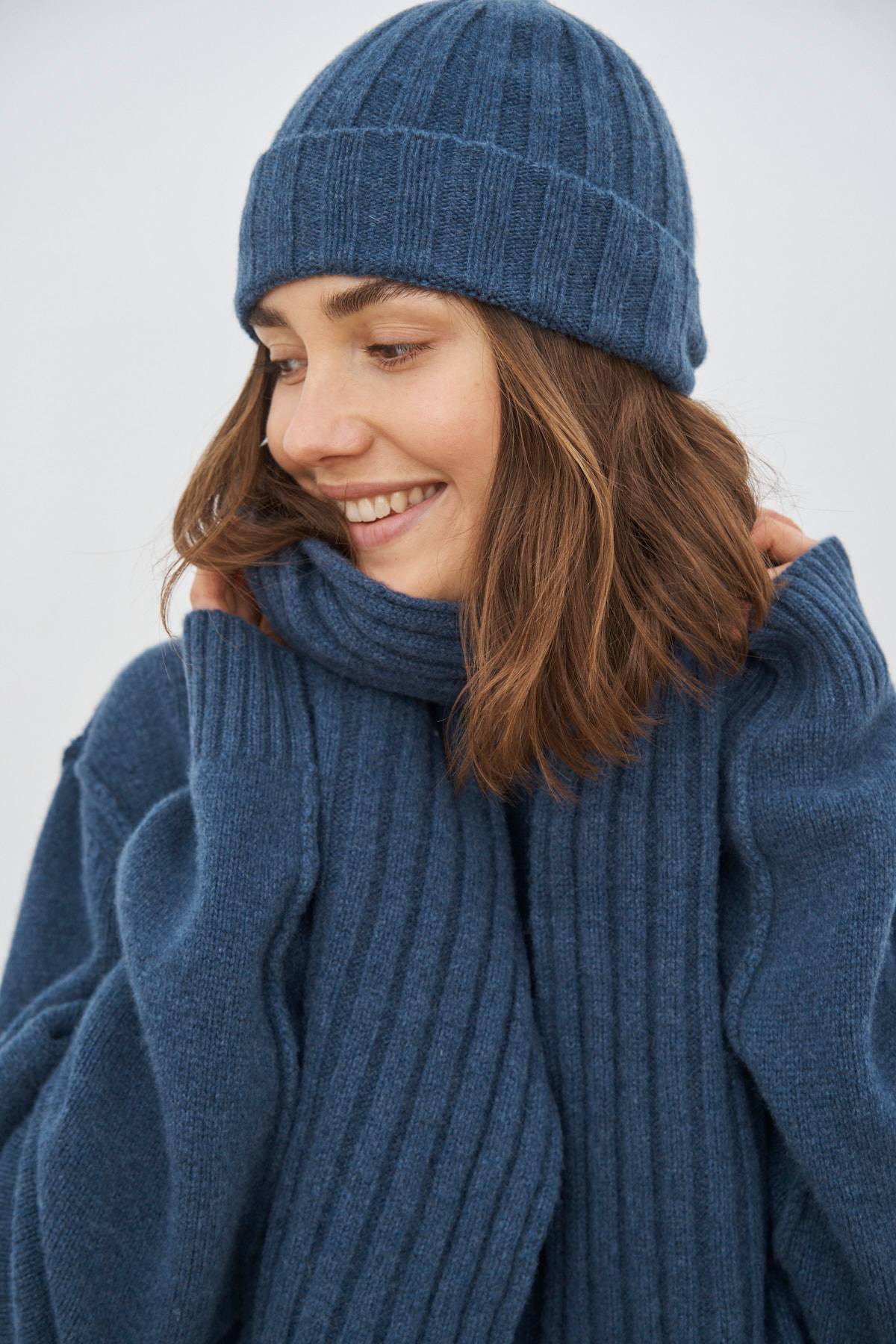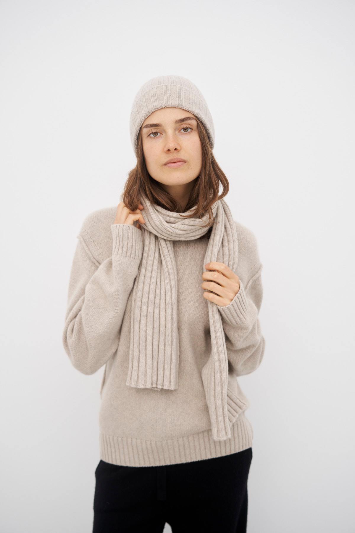 Eine exklusive Kollektion dicker Pullover und Accessoires, hergestellt in Italien aus recyceltem Kaschmir und Wolle, entworfen für Männer und Frauen.