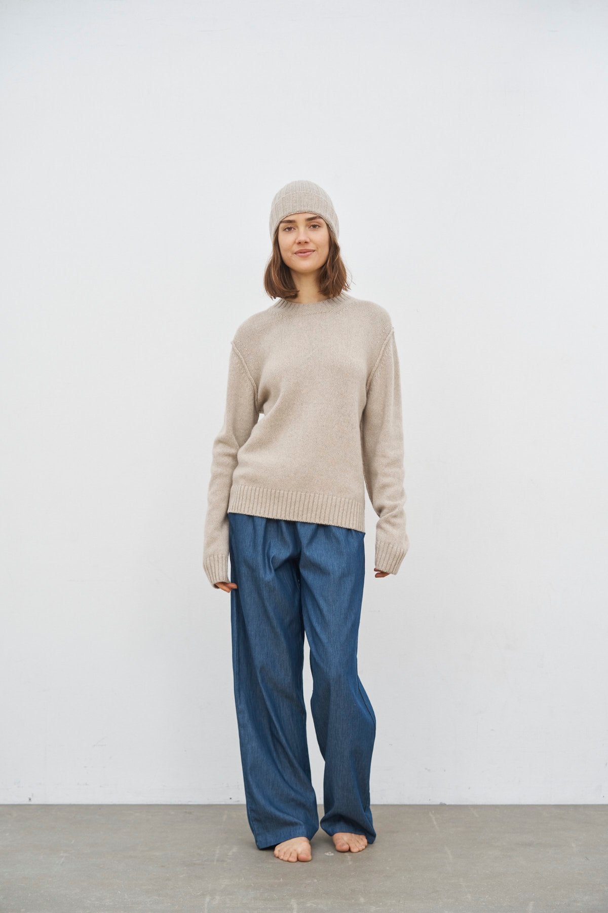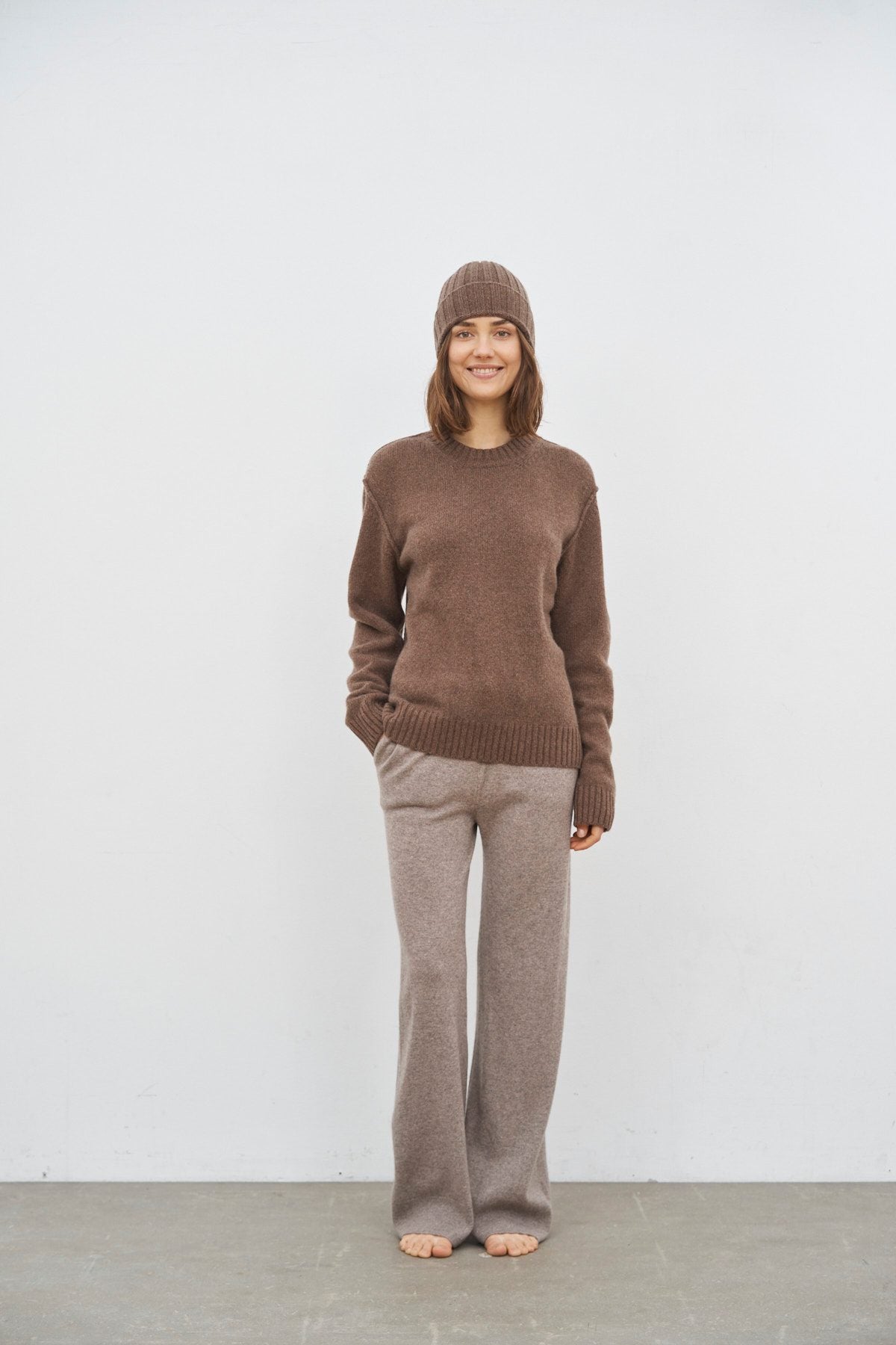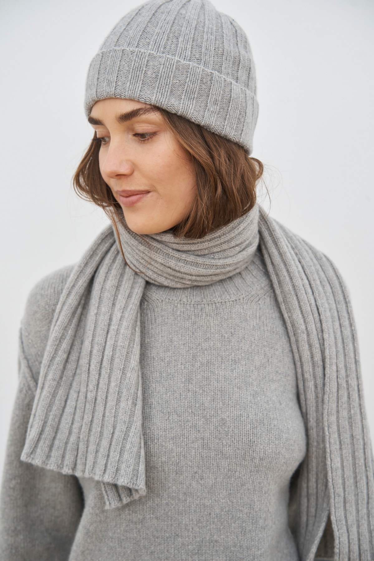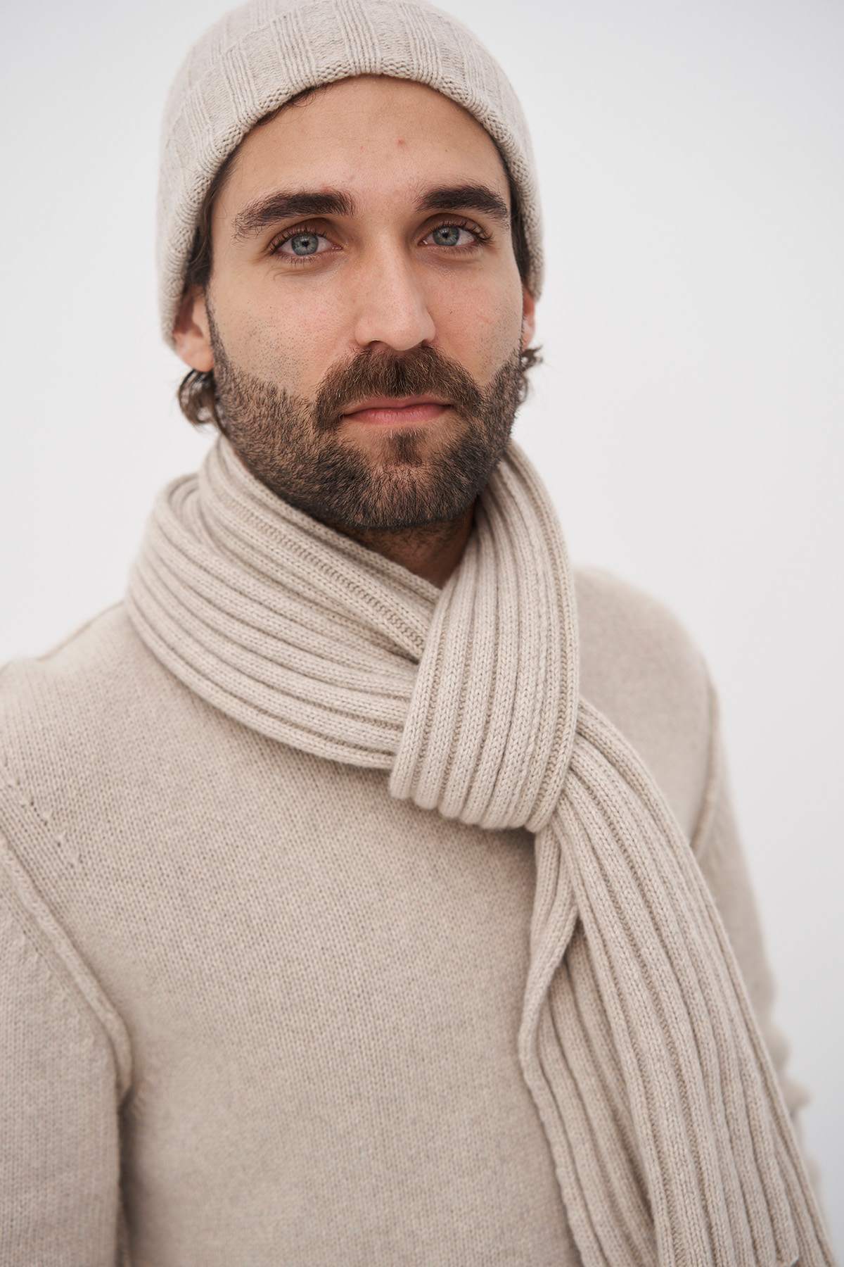 Eine exklusive Kollektion dicker Pullover und Accessoires, hergestellt in Italien aus recyceltem Kaschmir und Wolle, entworfen für Männer und Frauen.