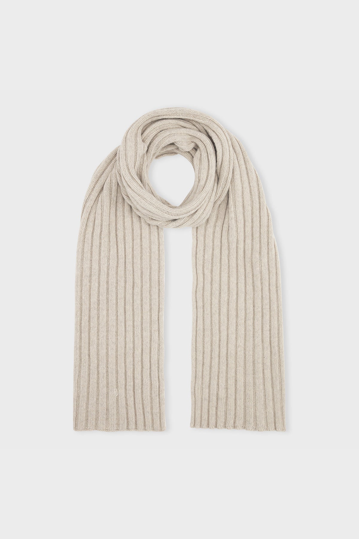 Ein zeitloser und vielseitiger Schal aus der Duo-Serie, hergestellt in Italien aus grobem recyceltem Kaschmir und Wolle.