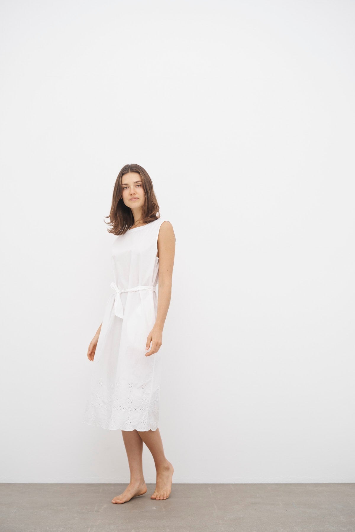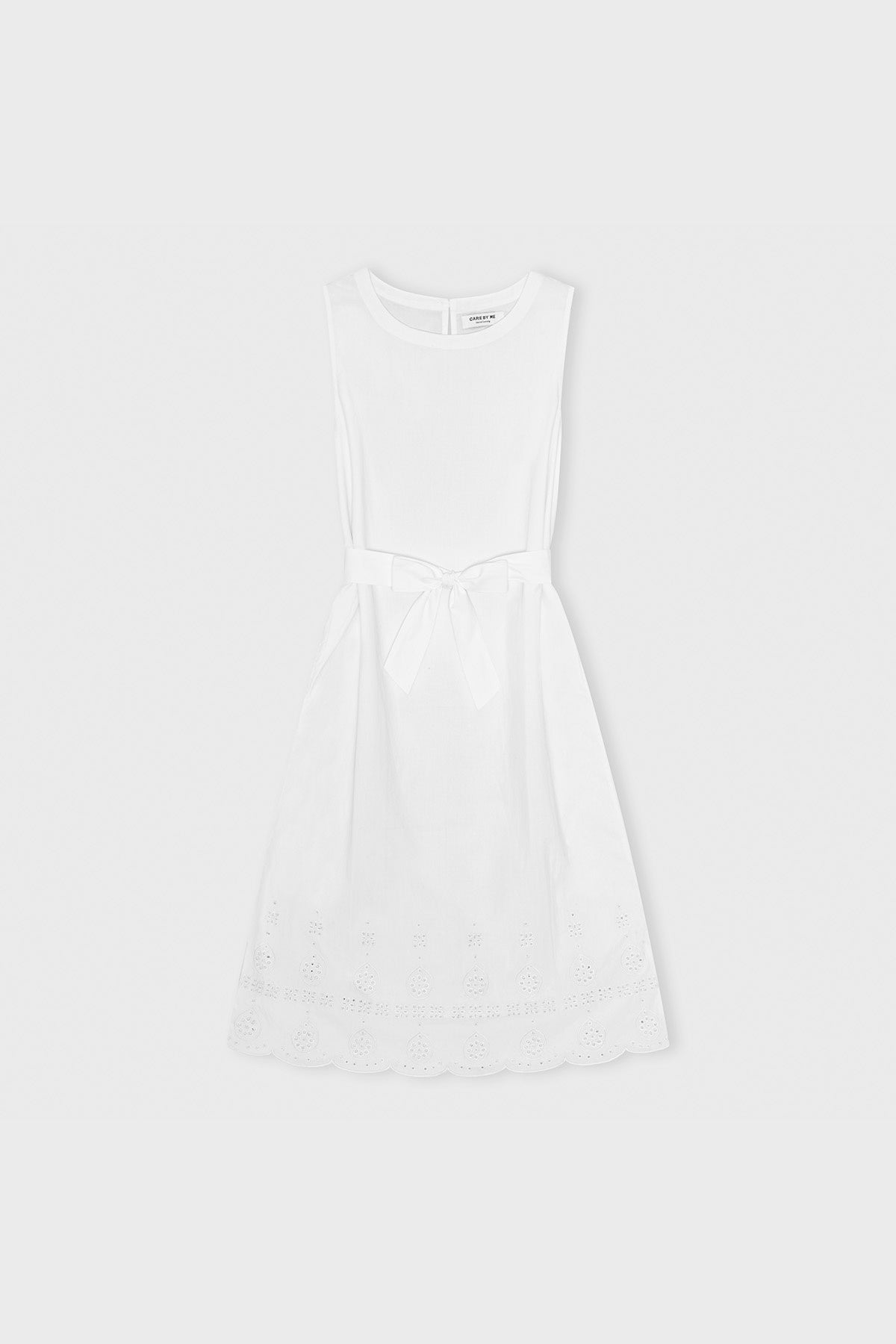 Schönes A-Linien-Kleid aus der beliebten Flora-Serie, gefertigt aus Bio-Baumwolle mit einem eleganten und ausdrucksstarken Broderie-Anglaise-Muster.