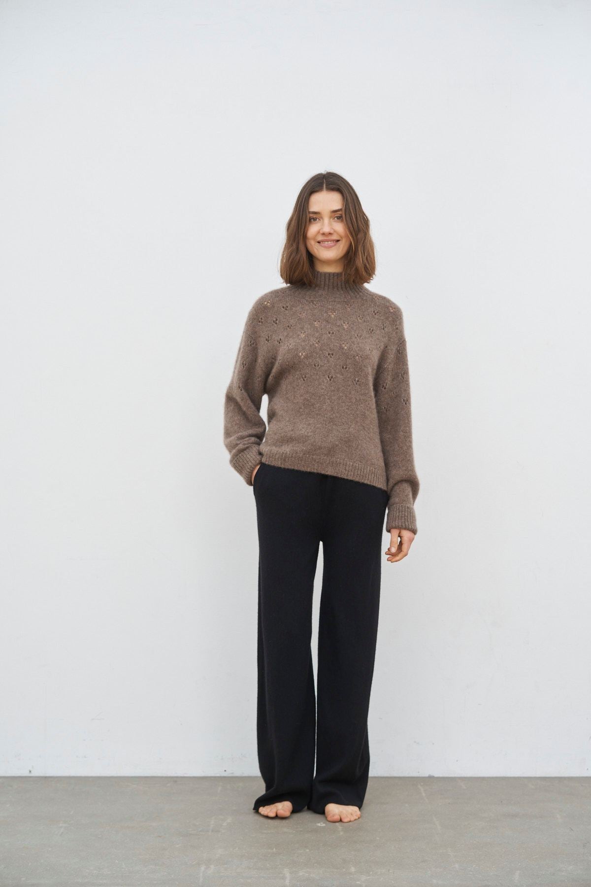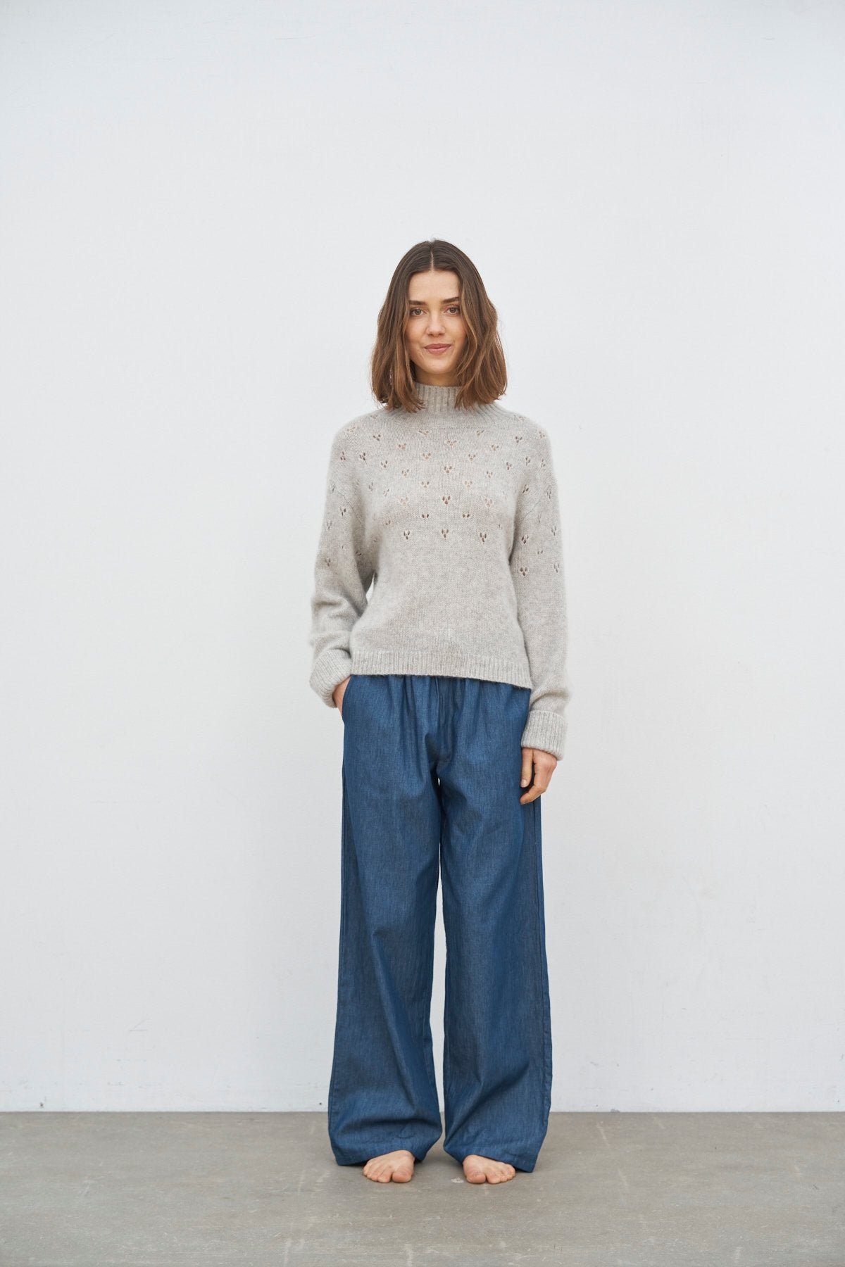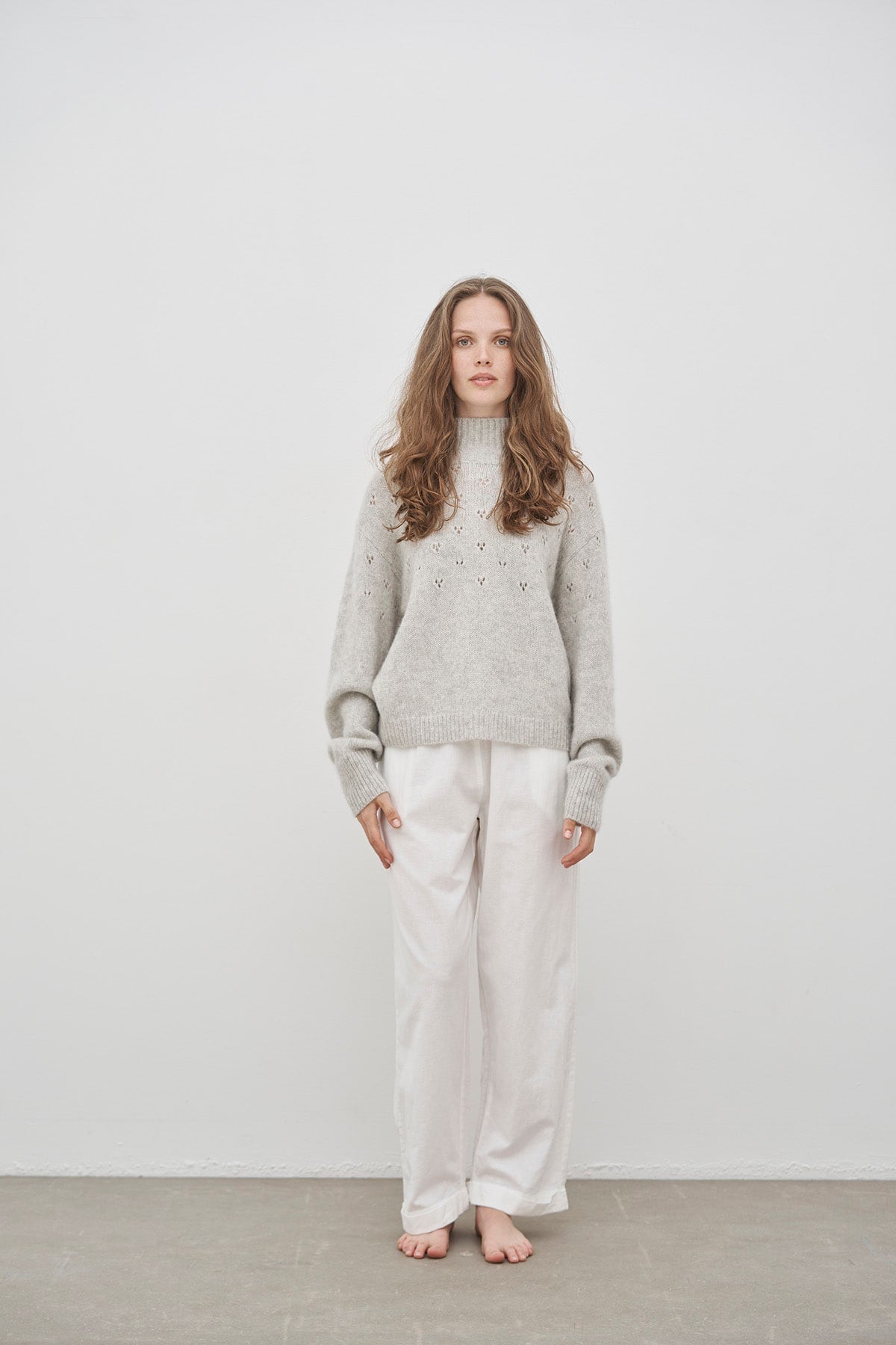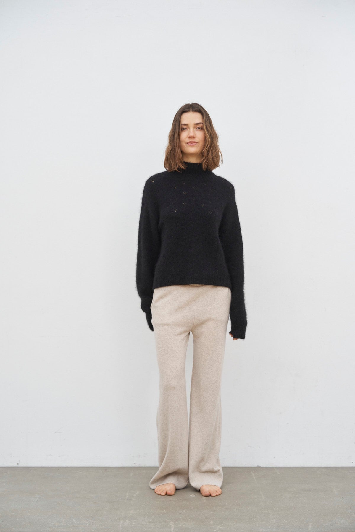 Mit seiner verkürzten Silhouette, dem hohen Kragen und der entspannten Passform verleiht dieser Pullover Ihrer Garderobe einen modernen Touch und sorgt gleichzeitig für Gemütlichkeit und Stil.