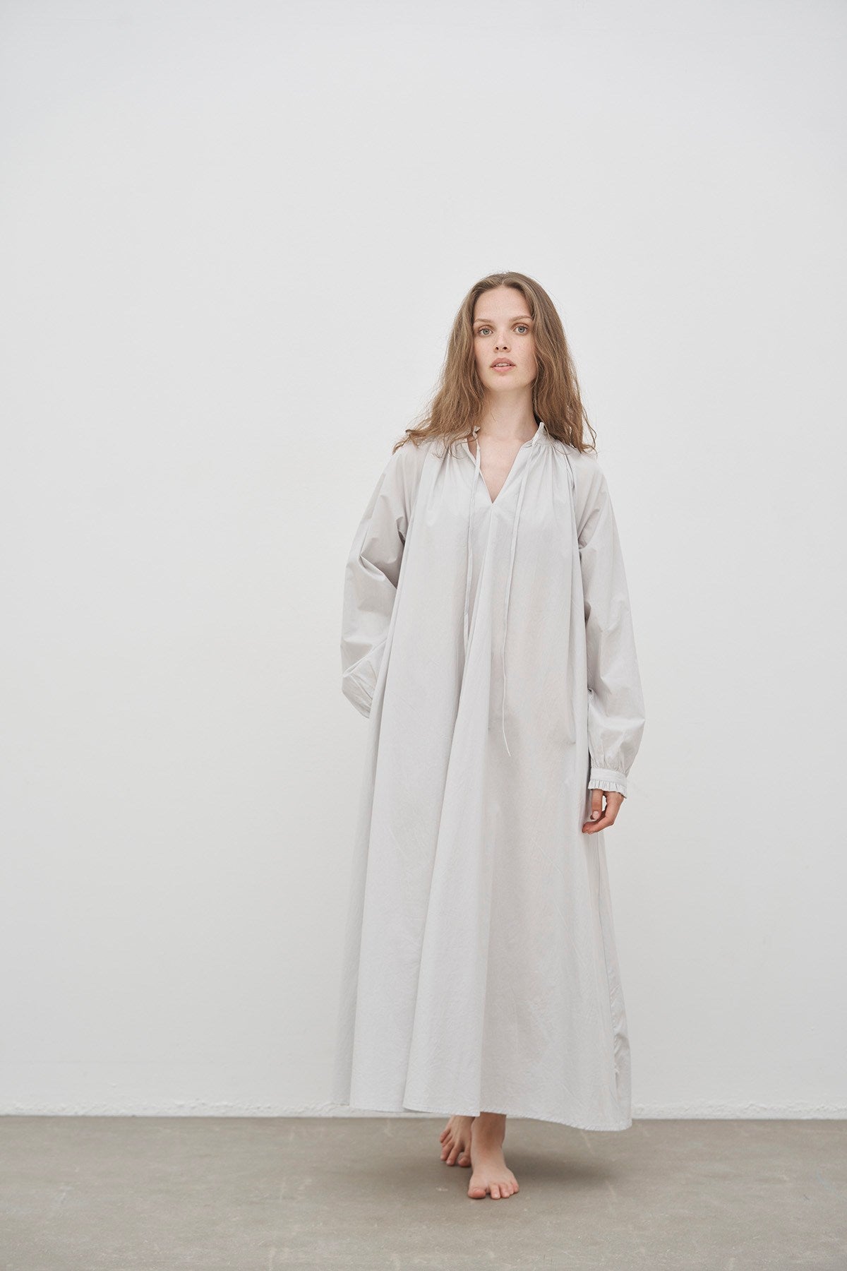 Wunderschönes, voluminöses Kleid aus der Laura-Serie, gefertigt aus leichtem, knusprigem und sehr zartem Bio-Baumwoll-Popeline.
