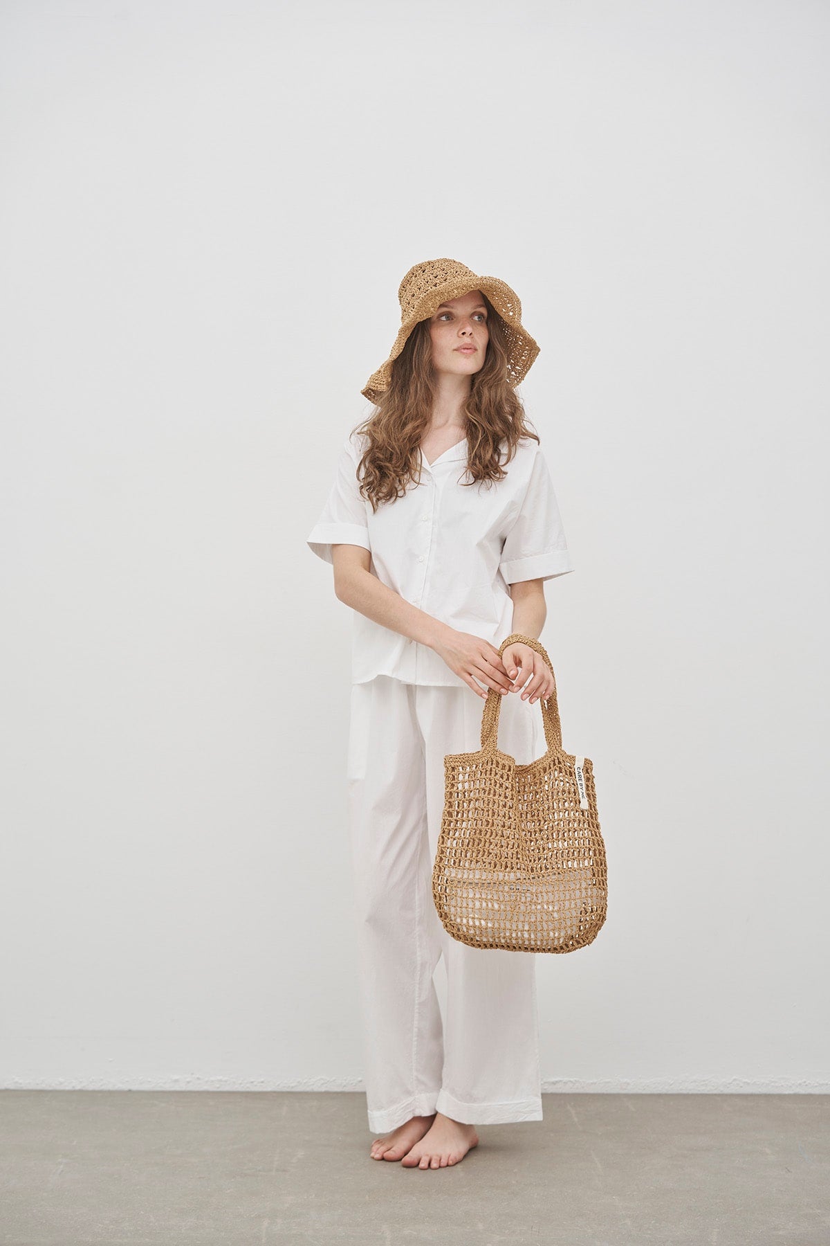Die Kollektion wird aus einer leichten und sehr delikaten Qualität von Bio-Baumwoll-Popelin gefertigt, die stark und knusprig ist, aber gleichzeitig angenehm weich.